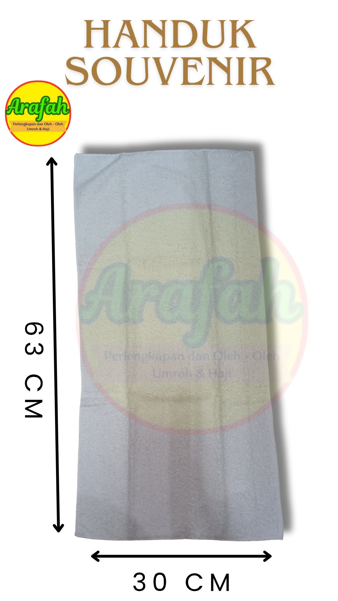 Handuk kecil multifungsi yang cocok dijadikan souvenir umroh, haji, acara pernikahan, aqiqah, atau pengajian. Terbuat dari bahan handuk lembut dan menyerap air dengan baik, handuk ini dikemas rapi dan siap dijadikan buah tangan yang bermanfaat dan elegan.